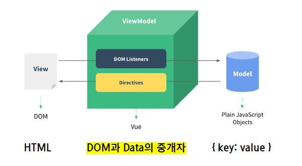 View와 Model 사이에서 Data와 DOM에 관련된 모든 일을 처리